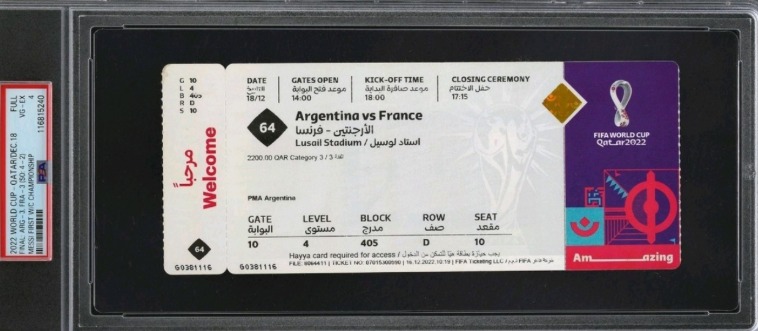 Il biglietto mostra una partita tra Argentina e Francia allo Stadio di Lusail in Qatar.